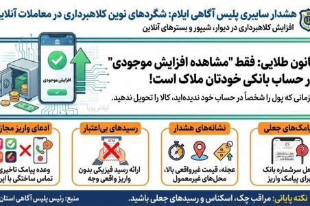 رئیس پلیس آگاهی استان ایلام با هشدار نسبت به افزایش کلاهبرداری در بستر برنامه‌های خرید و فروش اینترنتی، از شهروندان خواست پیش از تحویل کالا یا نهایی کردن معامله، از واریز قطعی وجه به حساب ...