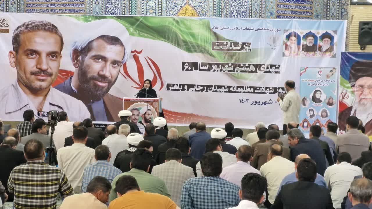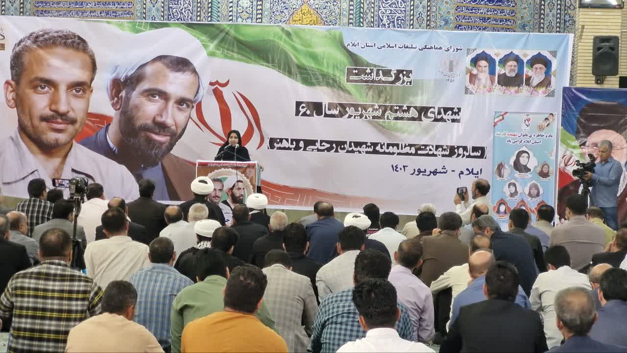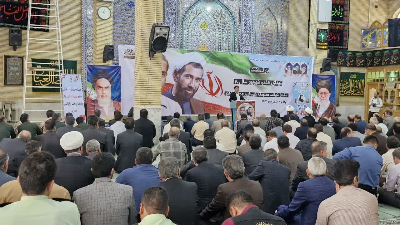 به گزارش خبرنگار پایگاه خبری تحلیلی ” ایلام پویا ” مراسم بزرگداشت شهدای هشتم شهریورماه سال ۶۰، مصادف با سالروز شهادت مظلومانه شهیدان رجایی و باهنر با حضور حجتالاسلام والمسلمین کریمیتبار نماینده محترم ولی فقیه در استان و امام جمعه ایلام، دکتر سارا فلاحی نماینده مردم ایلام در مجلس شورای اسلامی، سردار حسینی فرمانده سپاه اميرالمؤمنين (ع)، سرهنگ سلیمانیان فرمانده سپاه ناحیه ایلام ، مسئولین استانی و اقشار مختلف مردم در محل مسجد جامع شهر ایلام برگزار شد.