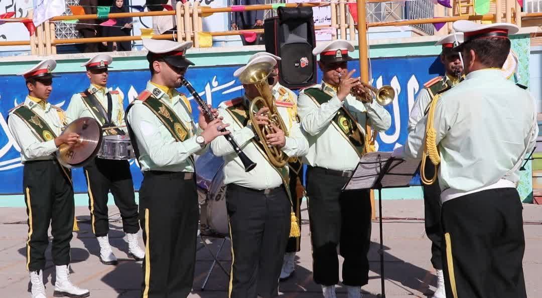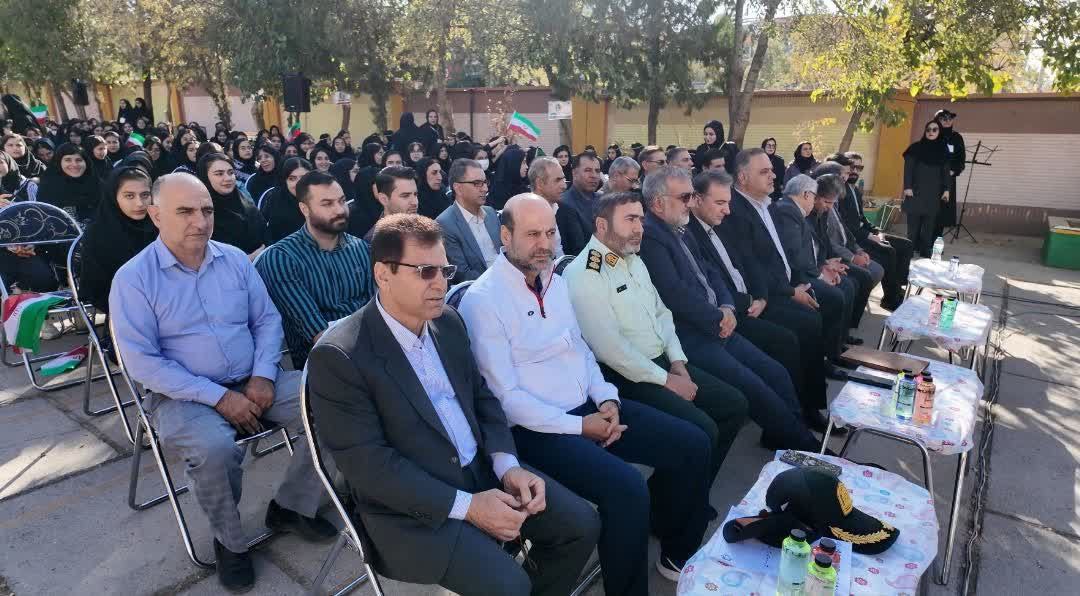 مراسم با اجرای گروه مارش انتظامی و نواختن سرود ملی جمهوری اسلامی ایران آغاز شد؛ لحظهای که شور ملی را در فضای مدرسه فرزانگان طنینانداز کرد.
